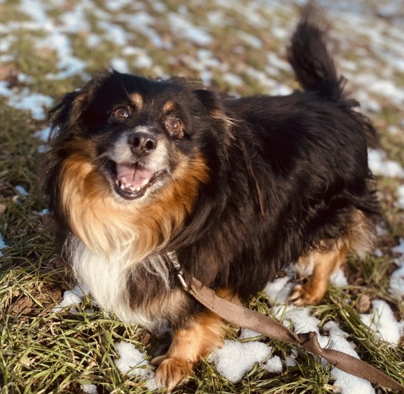 Makas kann etwas wählerisch sein, wenn es um seine Sympathien für andere Hunde geht, und manchmal bewacht er sein Futter. Aufgrund seines Alters sollte er nicht oft Treppen steigen.